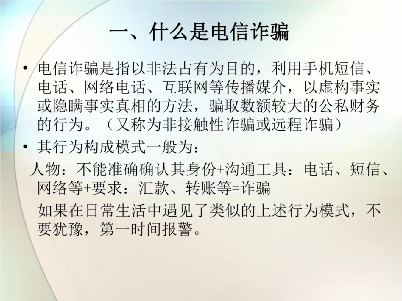 网络安全无小事,此次宣传教育班会的召开,使同学们对电信诈骗犯罪的方法及危害性有更深入全面的了解,增强了同学们识骗、防骗、拒骗的能力,对电信诈骗事件的发生起到良好的预防效果,同时对创建平安校园起到极好的促进作用。