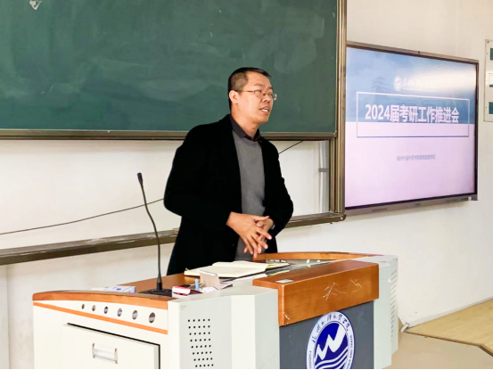 会议开始,吴晓凯书记总结分析了2023届毕业生当前考研情况,并从考研形势、学生自身能力、院校定位三个方面来分析合理选择院校的重要性。他表示,学院将集中力量帮助和服务好2024届考研学子。他以“有志者事竟成,破釜沉舟百二秦关终属楚,苦心人天不负卧薪尝胆三千越甲可吞吴。”赠言全体同学,希望他们可以树立信心,坚持到底。