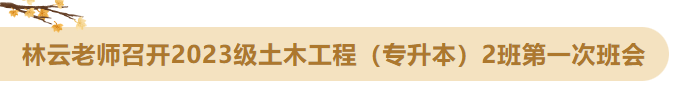 9月25日晚上,林云老师组织2023级土木工程(专升本)2班全体同学在北区教学楼5-201召开了第一次班会。