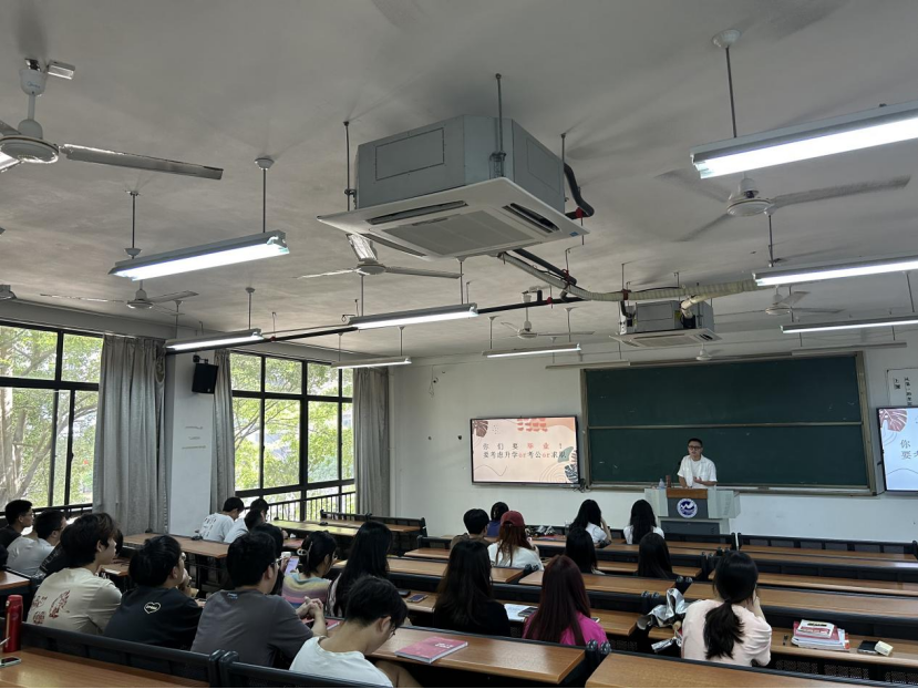 本次班会张沛杰老师首先强调大四学生最重要的就是保证毕业,确保不出现挂科,认真完成后续的毕业设计,并建议还未通过英语四六级的同学抓住最后一次机会,提高自己的求职竞争力。然后张沛杰老师以考研、考公和求职为切入点依次为同学们提供自己的经验。在考研和考公方面,张沛杰老师强调考公考研是一场信息战,需要充分做好择校和择岗位的准备,并且做好复习计划以及调整好心态。在求职方面,张沛杰老师为同学梳理了各种可获得求职的信息渠道,并且提醒各位同学需提前制作好简历。