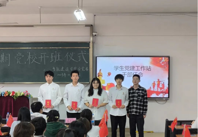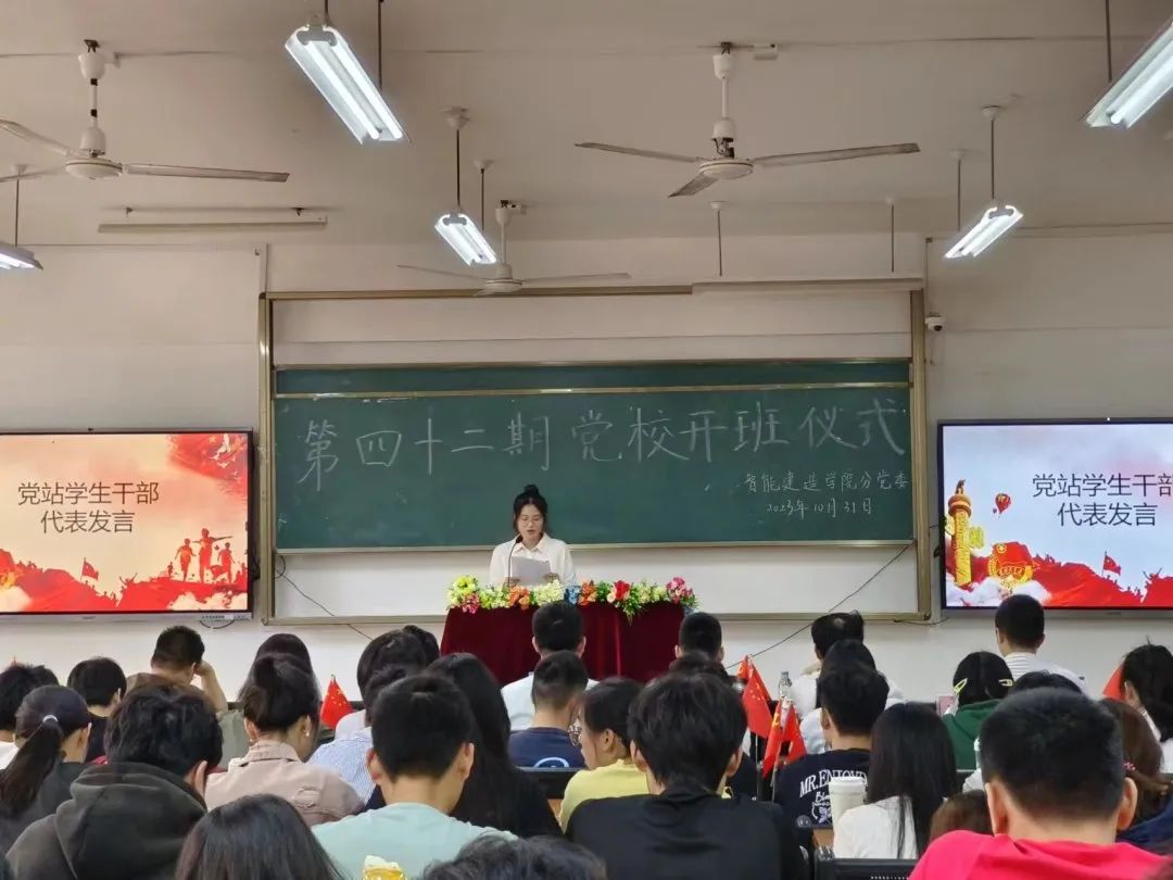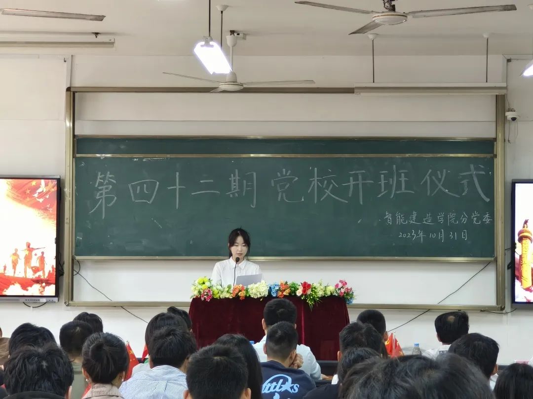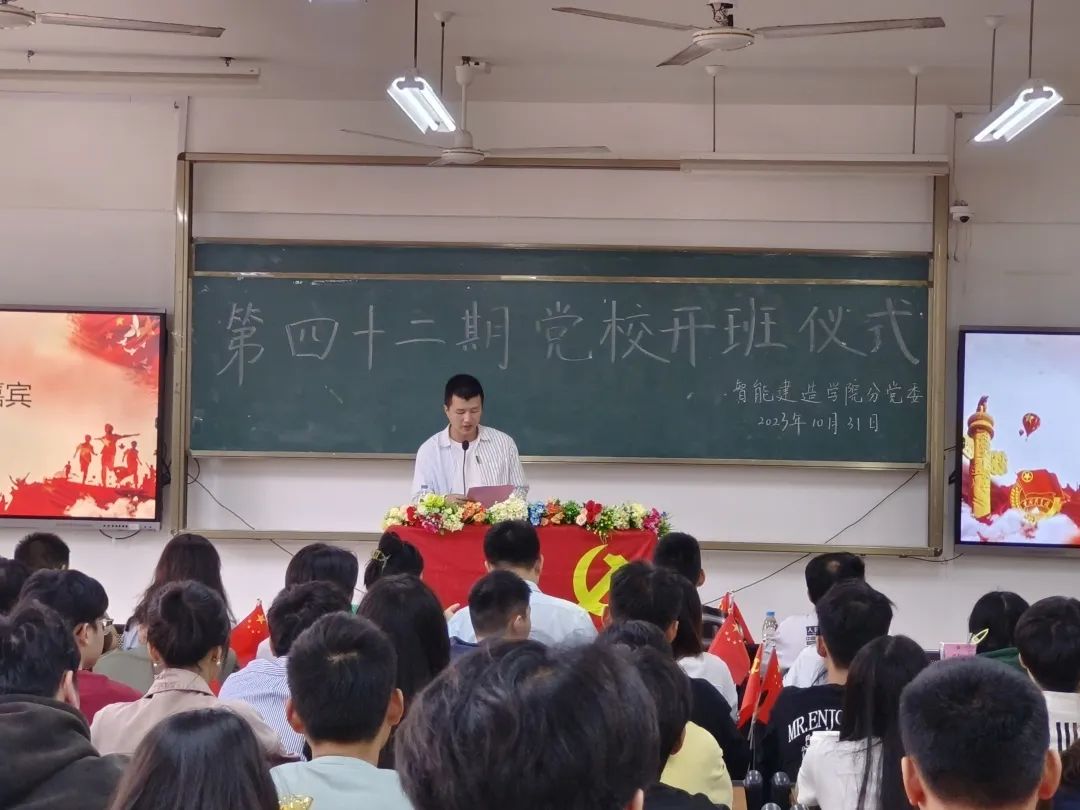 为进一步加强对入党积极分子(发展对象)的培养、教育和考察,提高入党积极分子的思想政治素养,智能建造学院分党委于2023年10月31日中午12:45在实3101举行第四十二期党校开班仪式。出席本次仪式有智能建造学院分党委书记、副院长、分党校校长吴晓凯老师,办公室主任、分党校教务长王欣老师,学生第二党支部书记吴煜洺老师,辅导员张李通老师、陈燎原老师、李严老师、林汶欣老师及培训班的全体同学。此次会议由学生第一党支部书记陈志楠老师主持。