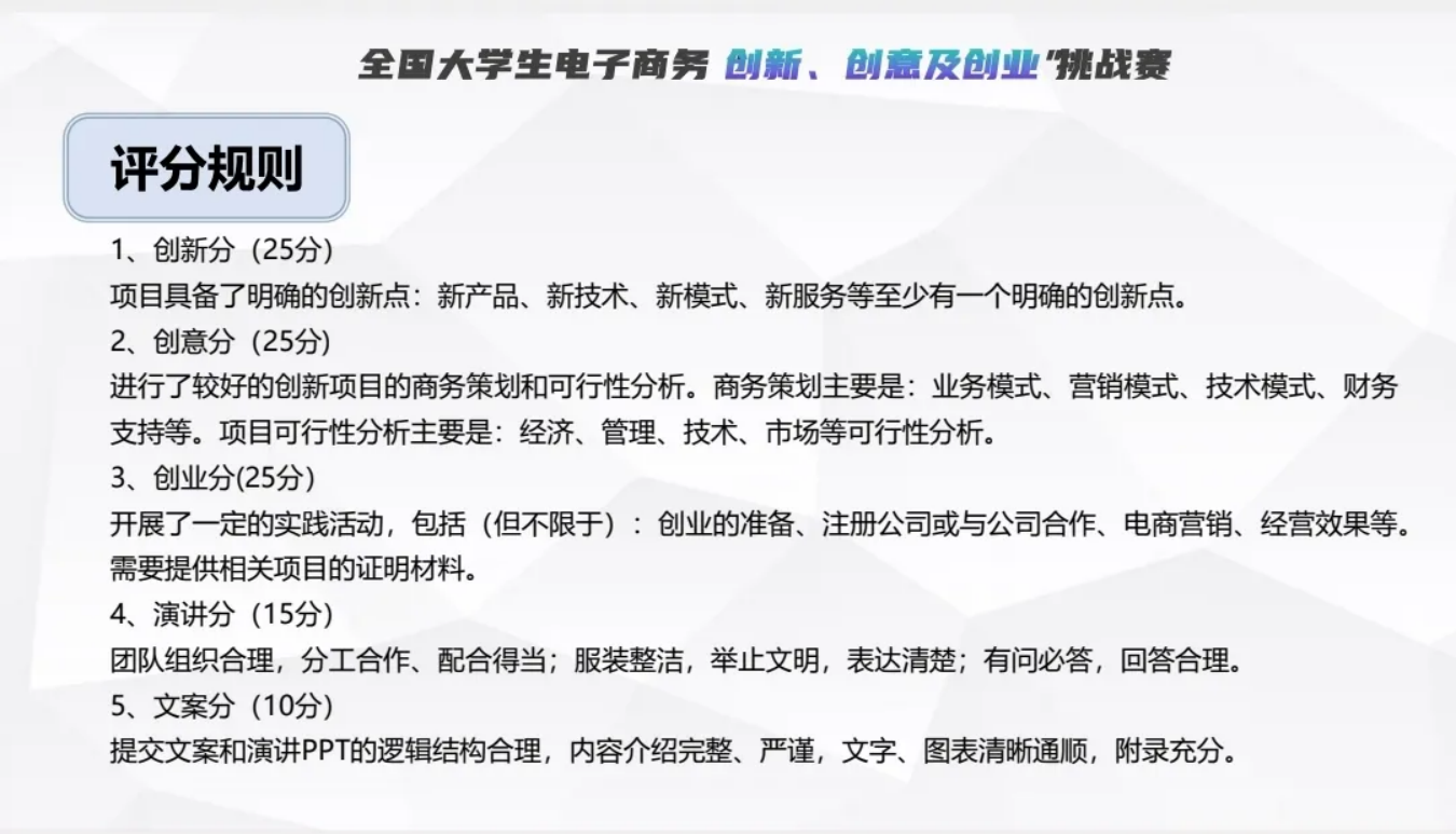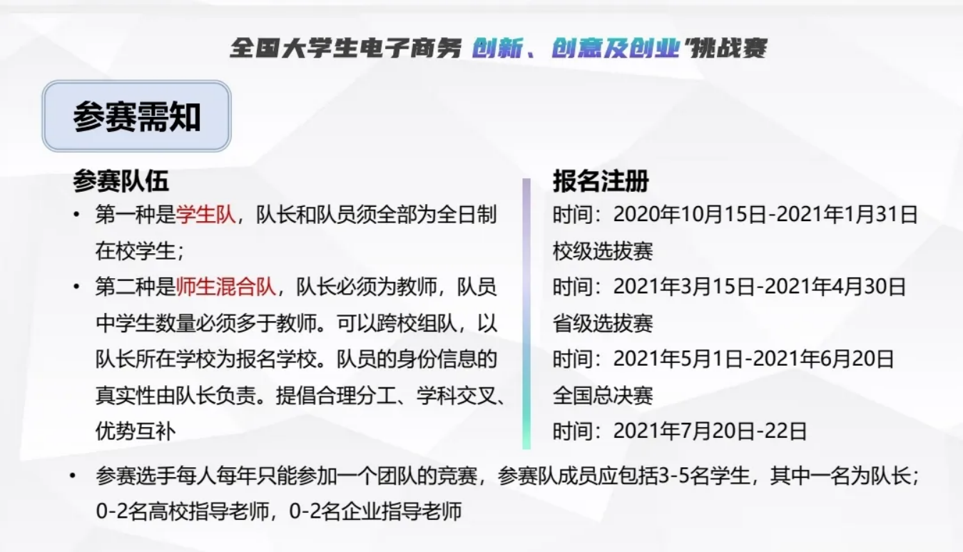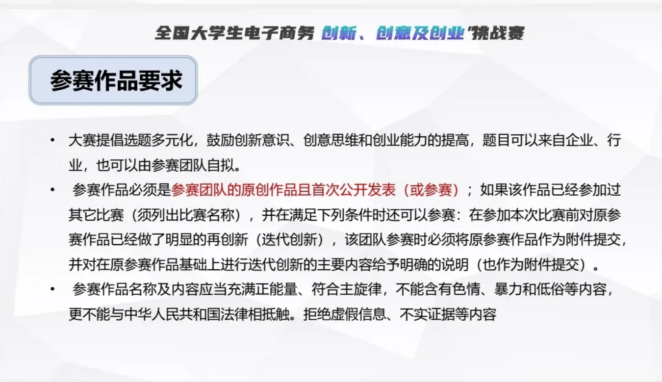 全国大学生电子商务创新、创意及创业“挑战赛,参赛队伍均以原创作品参赛,培养学生创新意识、创新思维、创业能量以及锻炼学生团队协同实战能力。