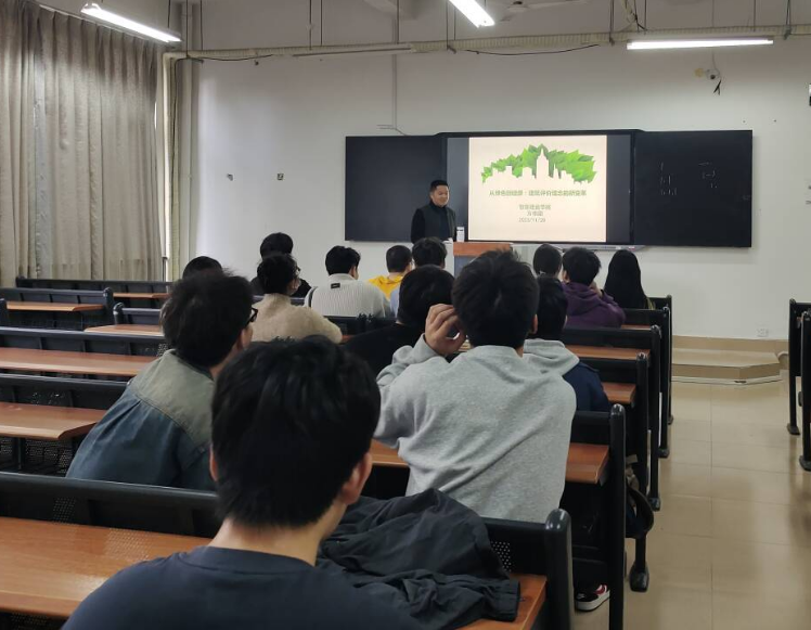 2023年11月28日,智能建造学院方伟国老师在教5209为2020级工程管理(1)班学生做了题为“绿色到健康:建筑评价理念的新变革”的讲座。