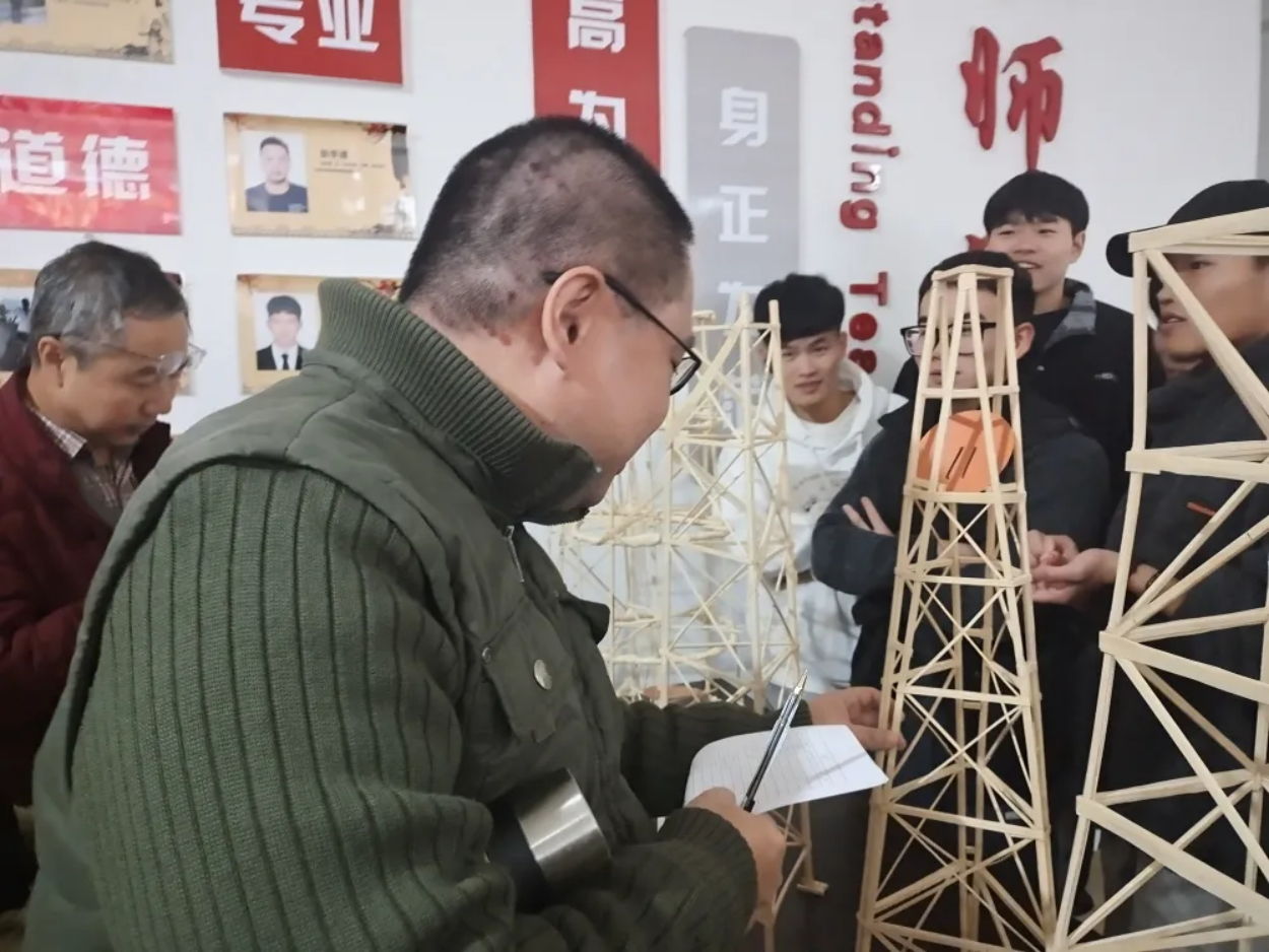 本次大赛以“以赛促学,赛创融合”为主题,由林伟老师作为总技术指导,毕贤顺院长莅临现场观赛赛场上,同学们结合材料力学、结构力学的相关知识对结构模型进行分析,以《多层结构模型设计、制作和加载试验》为题,通过结构模型制作、模型加载实验两个环节,设计出了理论上合理的模型,展开了设计思维与技术创新的碰撞。