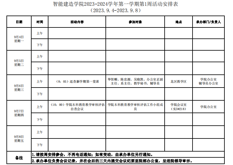 智能建造学院2023-2024学年第一学期第1周活动安排表