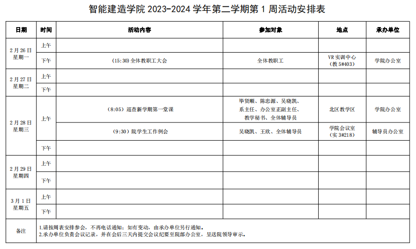 智能建造学院2023-2024学年第二学期第1周活动安排表