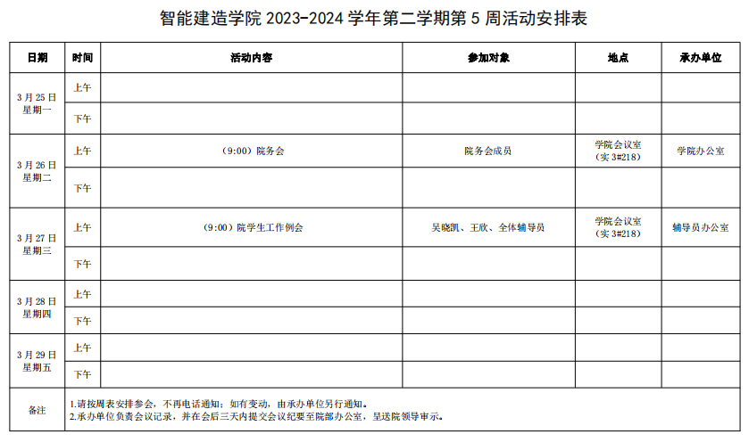智能建造学院2023-2024学年第二学期第5周活动安排表