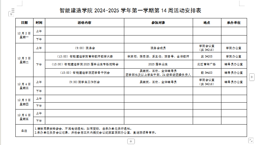 智能建造学院2023-2024学年第二学期第14周活动安排表